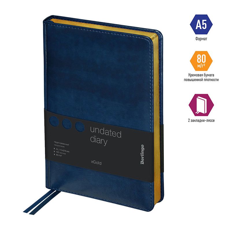 Ежедневник недатированный "xGold", А5, 320 страниц, синий