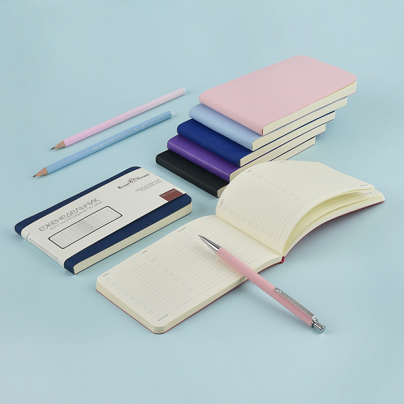 Благодаря компактному формату А6 ежедневник легко разместится в дамской сумочке, кармане пиджака.