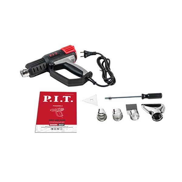 Фен строительный электрический МАСТЕР, 2000Вт, 50-600°С, 300-500л/мин, 3 скор, кейс PIT PHG 2000-C, описание: