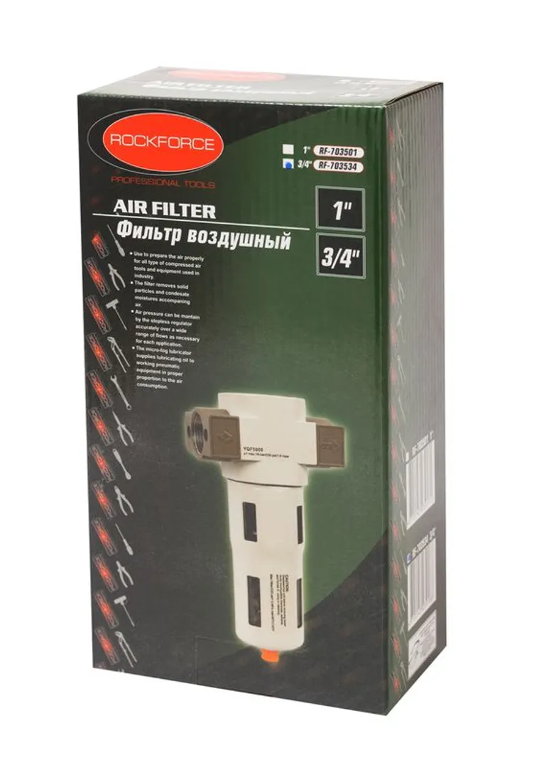 Фильтр для пневмосистемы ''Profi'' 3/4'', 5 мк, 8500 л/мин, давл. max 16 bar RockForce RF-703534