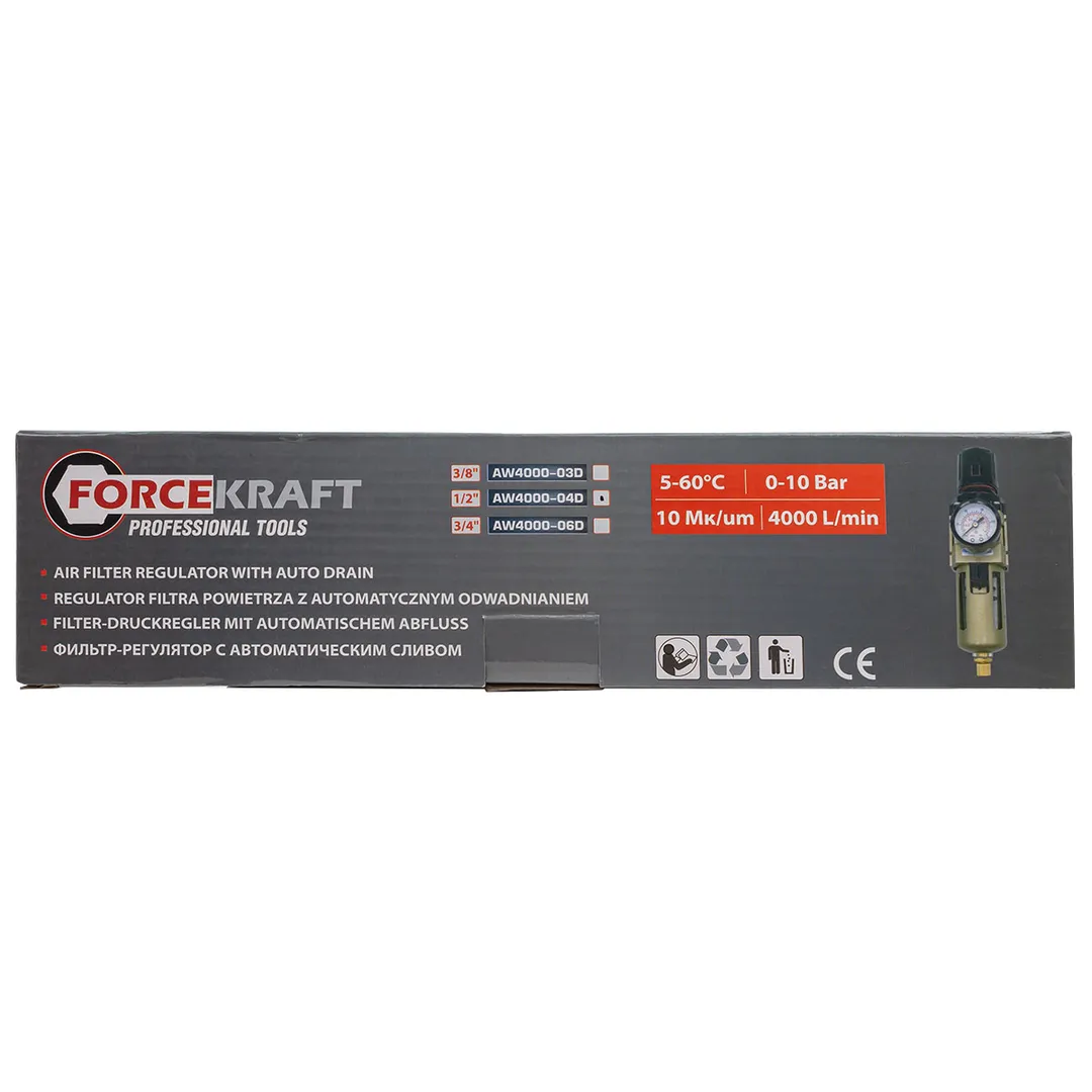 Фильтр-регулятор 3/8" с индикатором давления и автоматическим сливом ForceKraft FK-AW4000-03D, описание и характеристики: