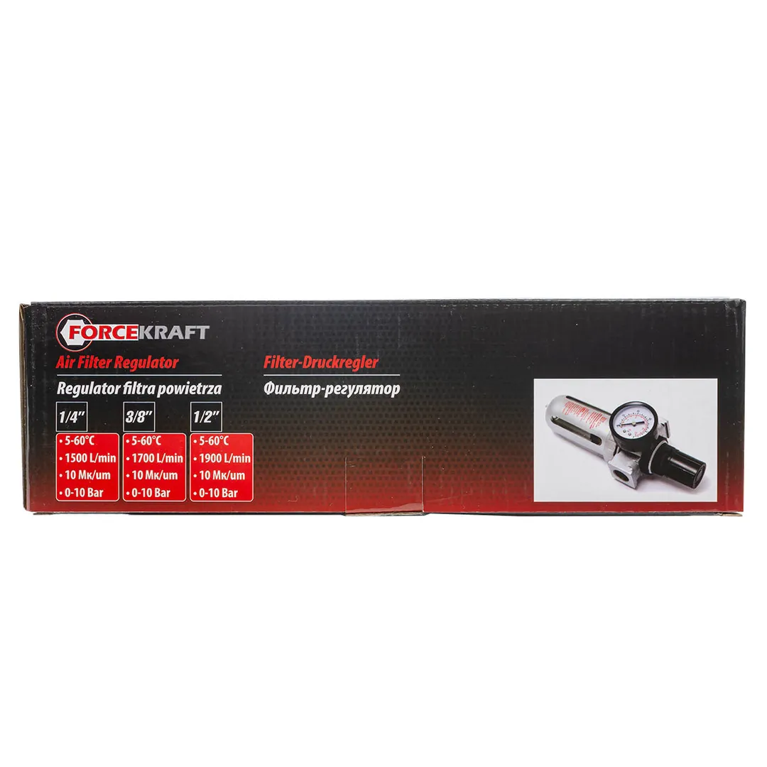 Фильтр-регулятор с индикатором давления для пневмосистем 1/2'', 10Мк, 1900 л/мин, 0-10bar,раб. температура 5°-60° ForceKraft FK-AFR804