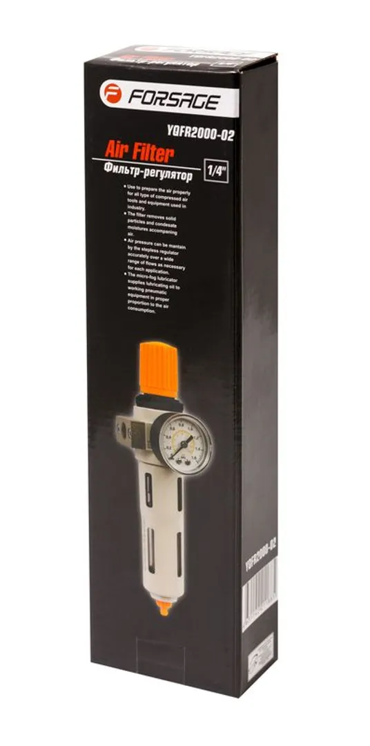 Фильтр-регулятор с индикатором давления для пневмосистемы 1/4'' пропускная способность:1300 л/мин, давление max: 16 bar, температура воздуха: 0° до 60 Forsage F-YQFR2000-02, описание и характеристики:
