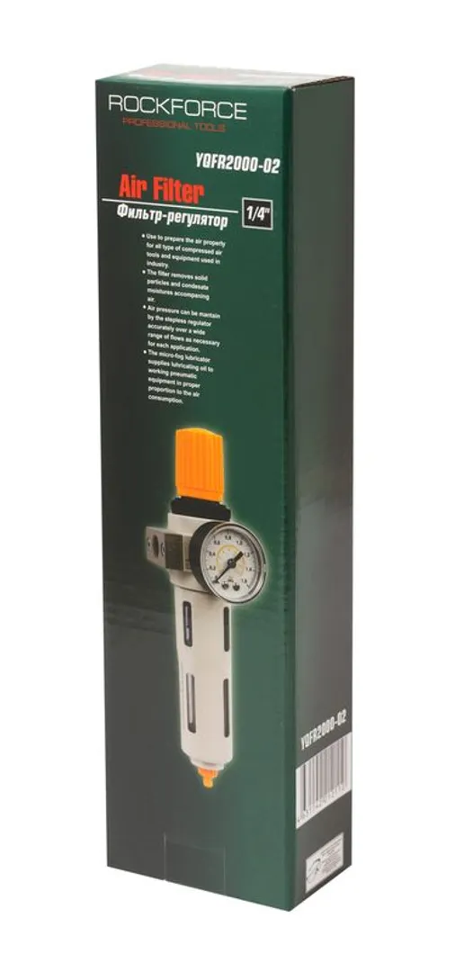 Фильтр-регулятор с индикатором давления для пневмосистемы 1/4'' RockForce RF-YQFR2000-02, описание и характеристики: