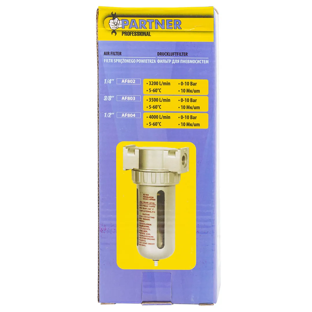 Фильтр воздушный для пневмосистем 1/4'' 10Мк, 3200 л/мин, 0-10bar, раб. температура 5°-60° Partner PA-AF802