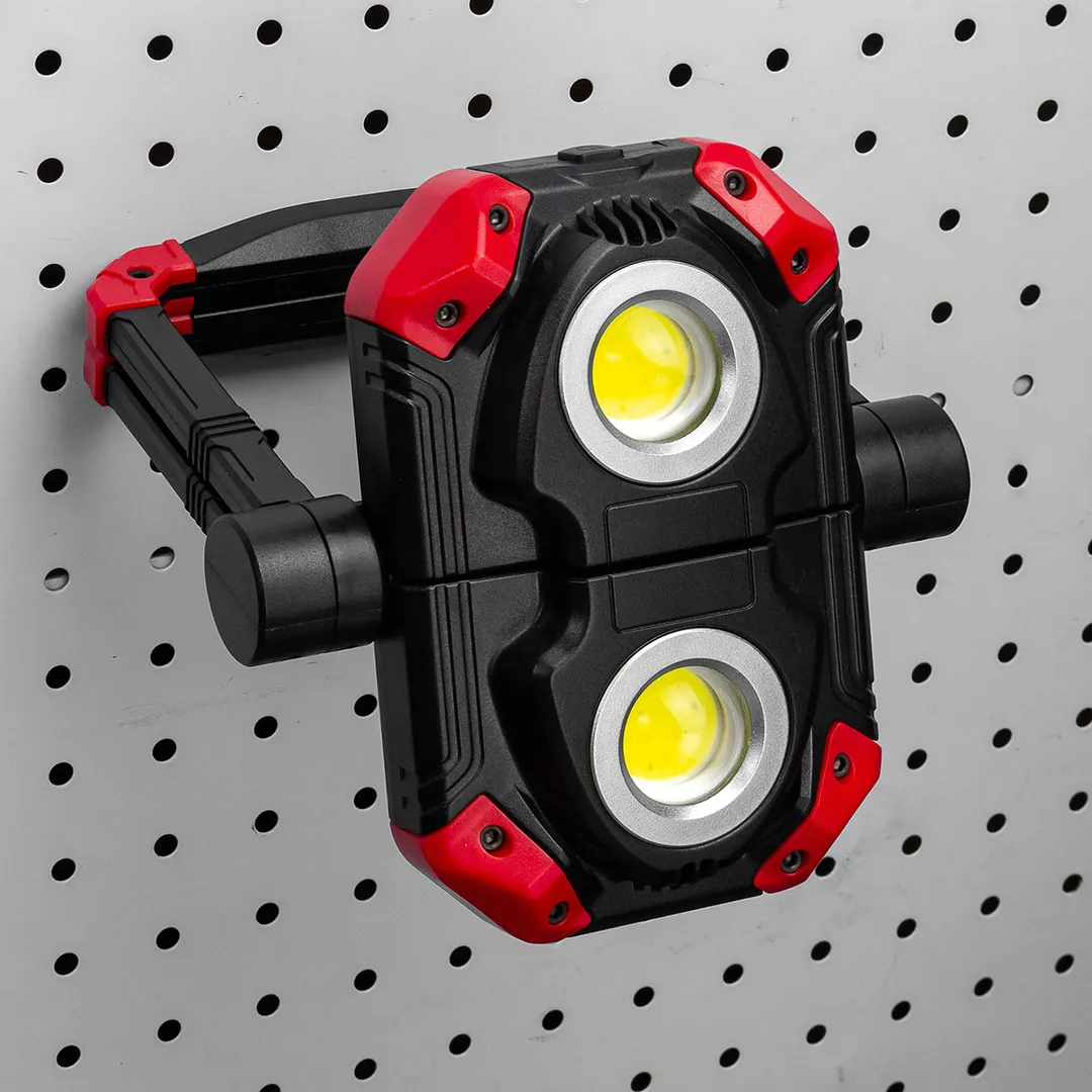 Складной светодиодный фонарь – туристический аксессуар, который найдет свое применение в походе, кемпинг, на рыбалке или охоте. Фонарь оснащён 2 светодиодамм СОВ 8Вт. Фонарь обладает складной конструкцией с поворотным основанием, что позволяет легко регулировать положение фонаря в пространстве. Магнитное основание позволяет закрепить фонарь на металлической поверхности, что идеально подходит для использования при аварийном ремонте или других работах. Доступны 4 режима работы: 1. Белый свет полная мощность (оба светодиода работают одновременно), 2. Белый свет полная мощность (работает только один светодиод), 3. Белый свет 50% мощности (оба светодиода работают одновременно), 4. Красный свет аварийный (оба светодиода работают одновременно). Безопасный и устойчивый к холоду. Заряжается любым удобным способом от USB, в комплекте есть шнур Micro USB Type C, также может использоваться как повербанк для заряда мобильного телефона. Корпус выполнен из пластика. Аккумулятор Li 4000мАч Световой поток 800Лм Размер 240х153х60мм Вес 390гПреимущества работы с нами
