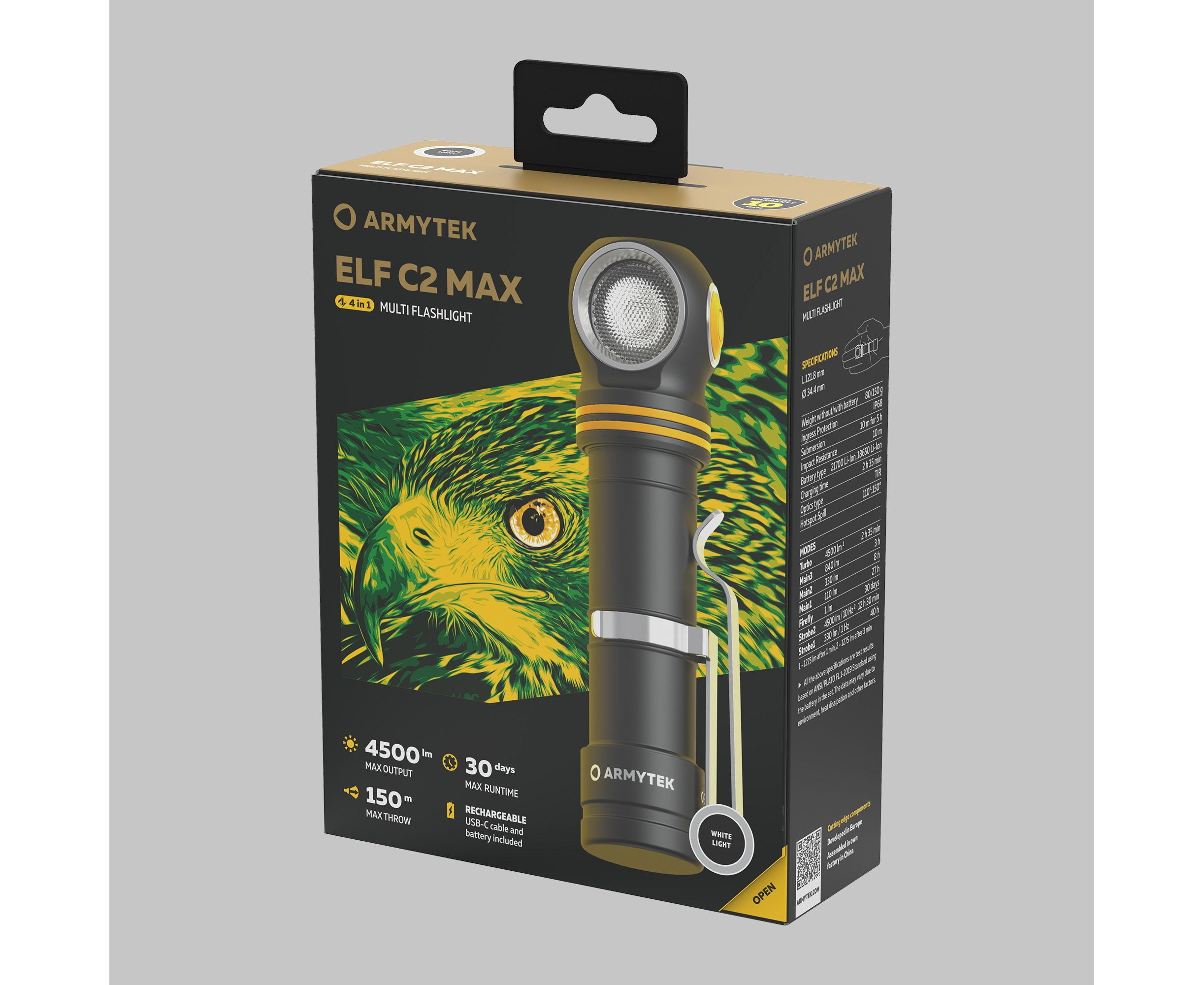 Новый уровень яркости в линейке мультифонарей. Elf C2 Max — это флагман серии с широким лучом 110°:150° и невероятным световым потоком в 4500 люмен.