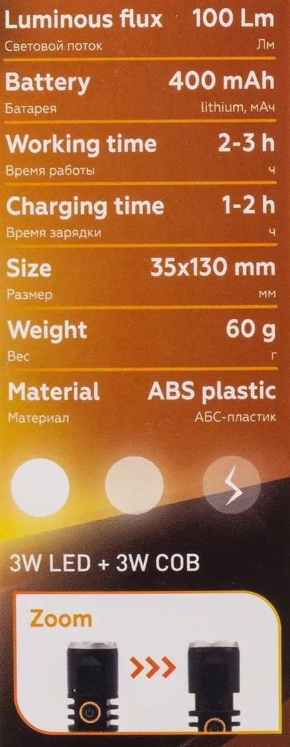 Ручной лазерный фонарь – туристический аксессуар, который найдет свое применение в походе, кемпинг, на рыбалке или охоте. Благодаря лазерному светодиоду этот аккумуляторный фонарик обеспечит яркое освещение на длительное время. Удобную карманную модель компактного размера берут с собой везде. Например, в палатку на охоте или рыбалке. Тактический предмет предусматривает световую регулировку. Фокусировочная линза имеет угол рассеивания света от широкого пятна до узконаправленного. Фокус луча меняется выдвижением головной части простым движением руки. Это позволяет использовать его в темное время суток, а также как источник основного света. Доступны 3 режима работы: яркий свет, тусклый свет, проблесковый режим (стробоскоп). Поэтому его можно взять даже в кемпинговый лагерь. Безопасный и устойчивый к холоду. Заряжается любым удобным способом от USB, в комплекте есть шнур. Корпус выполнен из пластика. Световой поток 100Лм Батарея LIion 400мАч Время работы 2-3ч Время зарядки 1-2ч Диаметр 35мм Длина 130мм Вес 60г Класс защиты IPX5Преимущества работы с нами