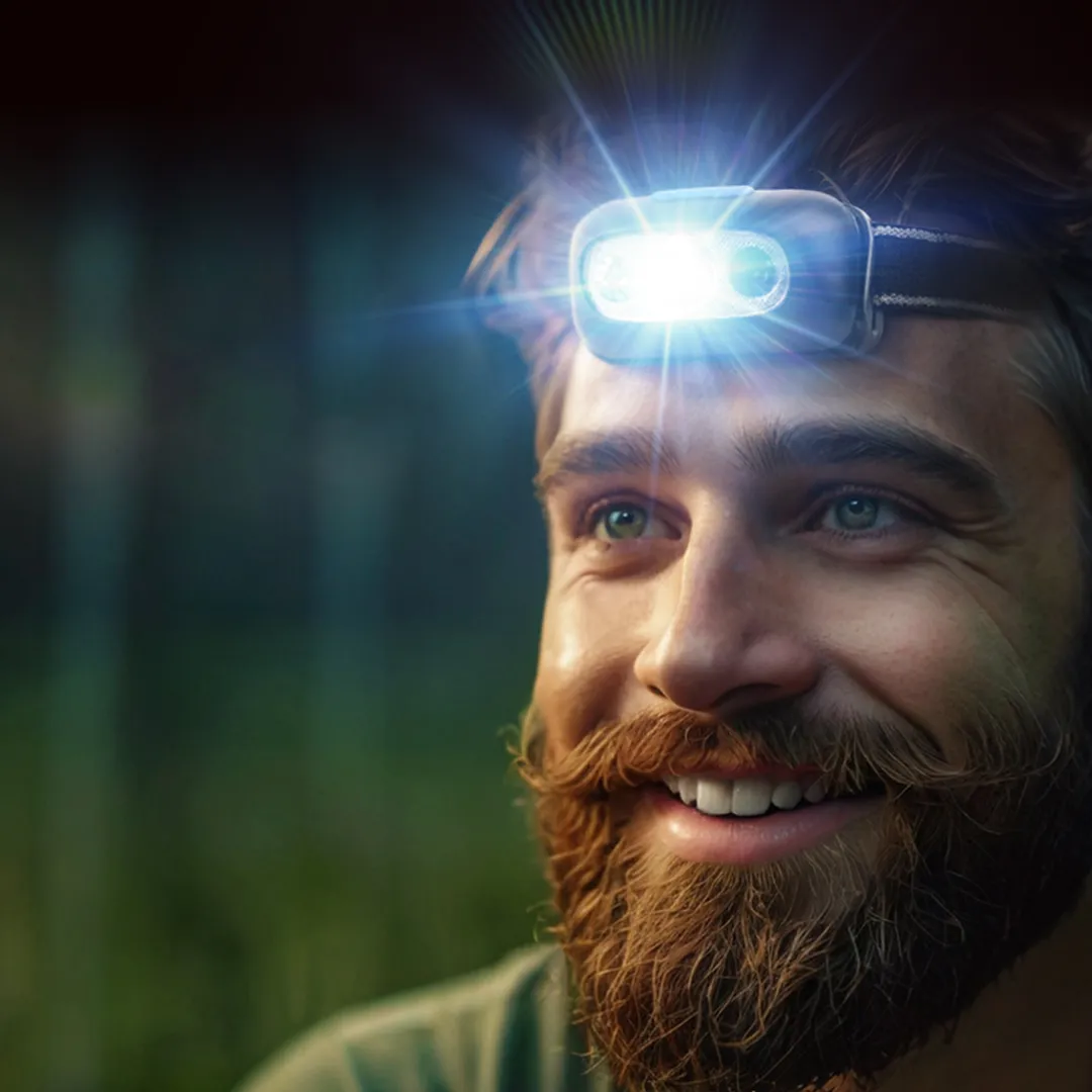 Фонарь светодиодный налобный аккумуляторный с сенсором бесконтактного включения 4 реж.раб., 500мАч RockForce RF-GF1110