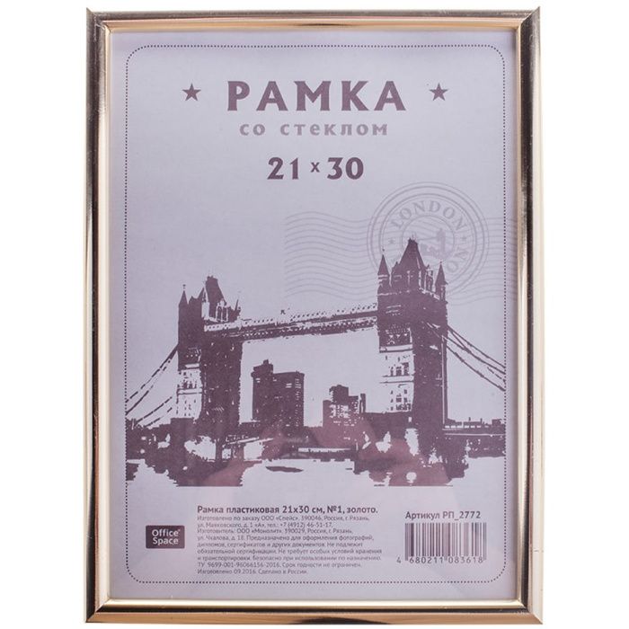 Фоторамка "OfficeSpace №1", 21x30 см, золотистый