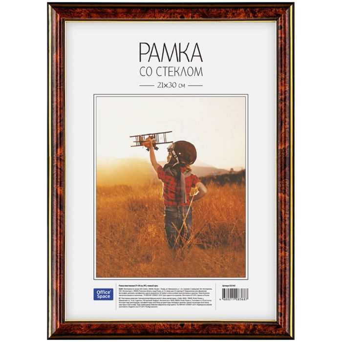 Фоторамка "OfficeSpace №2" подойдет для фотографий, дипломов, сертификатов, грамот, лицензий и других документов формата А4. Без ножки, есть возможность вертикального и горизонтального подвеса. Материал рамки - пластик, вставка из стекла, задняя панель выполнена из переплетного картона. Ширина профиля - 20 мм, толщина - 14 мм.
