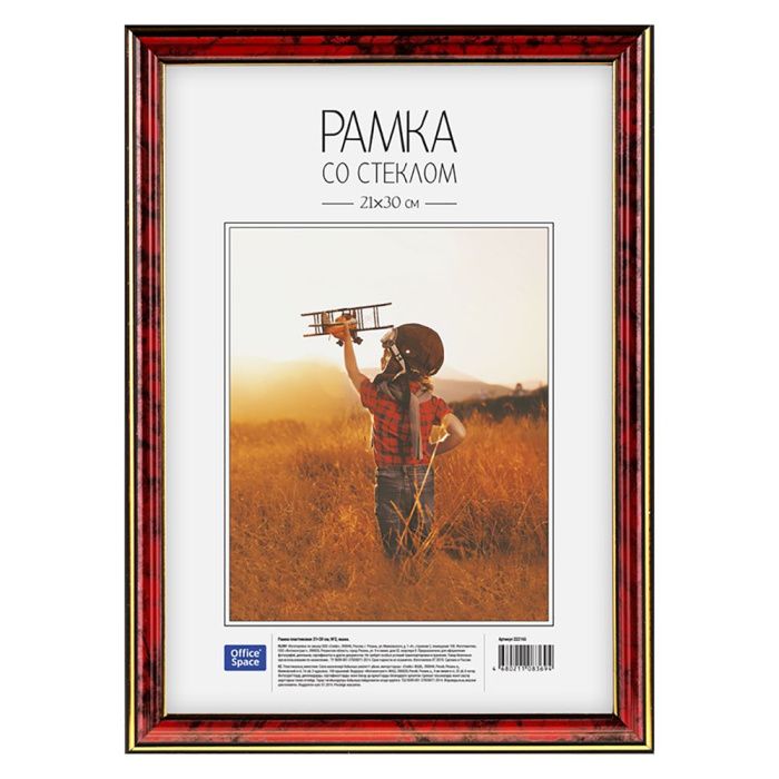 Фоторамка "OfficeSpace №2" подойдет для фотографий, дипломов, сертификатов, грамот, лицензий и других документов формата А4. Без ножки, есть возможность вертикального и горизонтального подвеса. Материал рамки - пластик, вставка из стекла, задняя панель выполнена из переплетного картона. Ширина профиля - 20 мм, толщина - 14 мм.