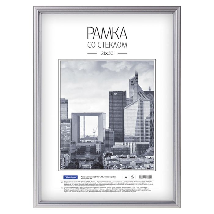 Фоторамка "OfficeSpace №5", 21x30 см, пластик, матовое серебро