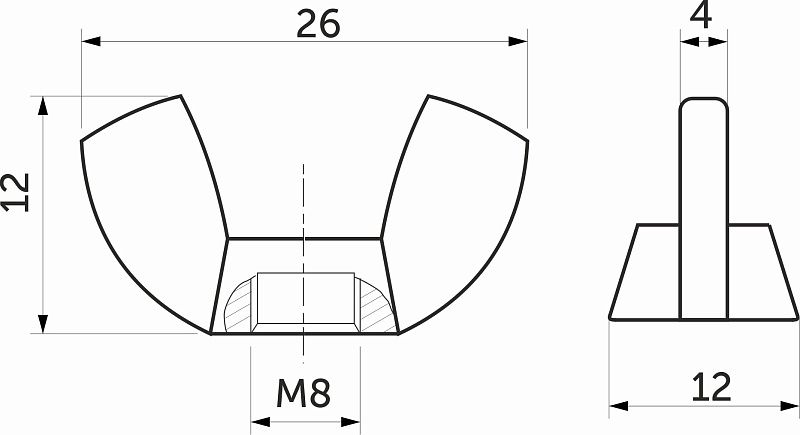 Гайка барашковая M8, упак. = 100 шт., AKS 115730, описание: