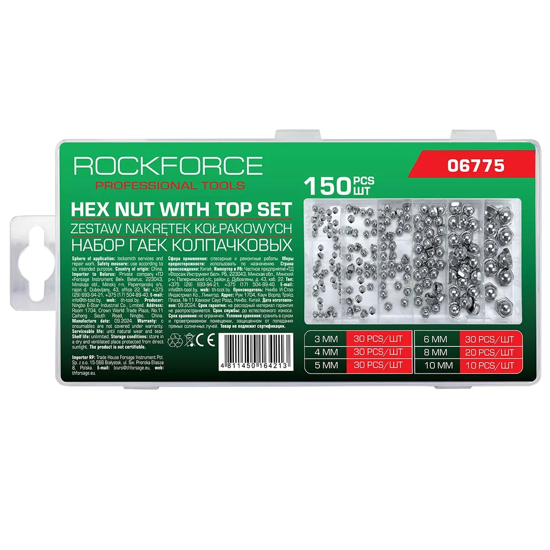 Набор нержавеющих колпачковых гаек 3-10 мм 150 пр RockForce RF-06775