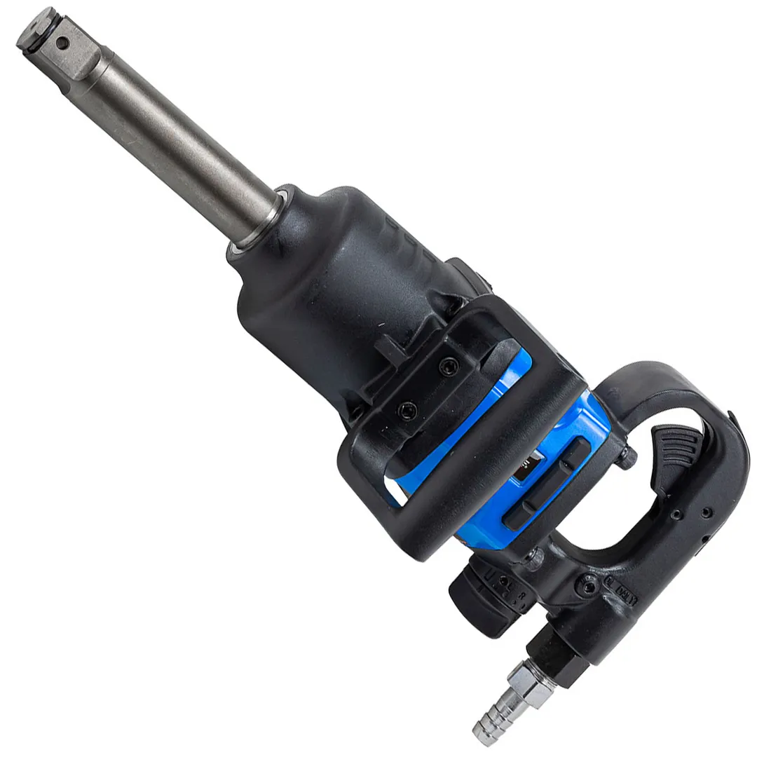 Пневматический гайковерт ударный с длинным валом оснащен квадратом шпинделя размером 1" (25,4 мм), который позволяет использовать широкий спектр головок и насадок различных размеров. За счет высокого крутящего момента и наличия эффективного ударного механизма, данный пнемвогайковерт с реверсом и регулировкой усилия способен успешно справляться с самыми высоконагруженными резьбовыми соединениями, и работать с насадками максимальных типоразмеров. Для удобства применения инструмент весом 8.4 кг оснащен основной рукоятью пистолетного типа и надежной дополнительной боковой ручкой. Инструмент комплектуется емкостью для смазки и регулировочными ключами. Пневматический ударный гайковерт с реверсом и регулировкой усилия затяжки предназначен для авторемонтных предприятий и производства работ в шиномонтажных мастерских, в том числе на грузовых автомобилях самой высокой грузоподъемности. Максимальное рабочее давление 6.3бар; Скорость вращения на холостом ходу 6000об/мин; Максимальный крутящий момент 2000Нм; Входное отверстие под воздух 1/2"; Минимальный диаметр шланга 12мм; Расход воздуха 320л/мин; Длина гайковерта 450 мм.Преимущества работы с нами