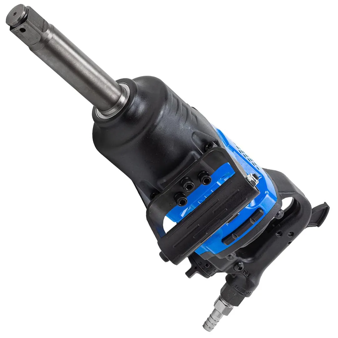 Пневматический гайковерт ударный с длинным валом оснащен квадратом шпинделя размером 1" (25,4 мм), который позволяет использовать широкий спектр головок и насадок различных размеров. За счет высокого крутящего момента и наличия эффективного ударного механизма, данный пнемвогайковерт с реверсом и регулировкой усилия способен успешно справляться с самыми высоконагруженными резьбовыми соединениями, и работать с насадками максимальных типоразмеров. Для удобства применения инструмент весом 11.6 кг оснащен основной рукоятью пистолетного типа и надежной дополнительной боковой ручкой. Инструмент комплектуется емкостью для смазки и регулировочными ключами. Пневматический ударный гайковерт с реверсом и регулировкой усилия затяжки предназначен для авторемонтных предприятий и производства работ в шиномонтажных мастерских, в том числе на грузовых автомобилях самой высокой грузоподъемности. Максимальное рабочее давление 6.3бар; Скорость вращения на холостом ходу 4000об/мин; Максимальный крутящий момент 2700Нм; Входное отверстие под воздух 1/2"; Минимальный диаметр шланга 12мм; Расход воздуха 340л/мин; Длина гайковерта 510 мм.Преимущества работы с нами