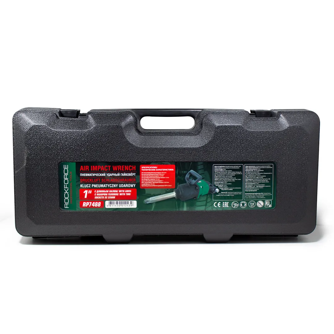 Пневмогайковерт ударный с длинным валом, реверсом и регулировкой усилия 1''+головки 32, 33мм 3100Hм RockForce RF-RP7488, описание и характеристики: