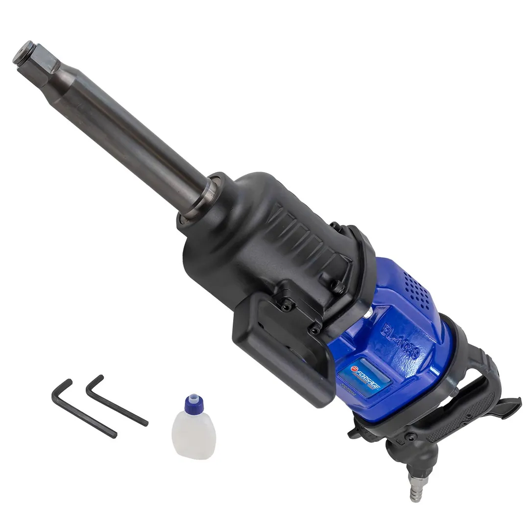 Пневматический гайковерт ударный с длинным валом оснащен квадратом шпинделя размером 1" (25,4 мм), который позволяет использовать широкий спектр головок и насадок различных размеров. За счет высокого крутящего момента и наличия эффективного ударного механизма, данный пнемвогайковерт с реверсом и регулировкой усилия способен успешно справляться с самыми высоконагруженными резьбовыми соединениями, и работать с насадками максимальных типоразмеров. Для удобства применения инструмент весом 21 кг оснащен основной рукоятью пистолетного типа и надежной дополнительной боковой ручкой. Инструмент комплектуется емкостью для смазки и регулировочными ключами. Пневматический ударный гайковерт с реверсом и регулировкой усилия затяжки предназначен для авторемонтных предприятий и производства работ в шиномонтажных мастерских, в том числе на грузовых автомобилях самой высокой грузоподъемности. Скорость вращения на холостом ходу 2000об/мин; Максимальный крутящий момент 4000Нм; Входное отверстие под воздух 1/2"; Минимальный диаметр шланга 12мм; Расход воздуха 480л/мин.Преимущества работы с нами