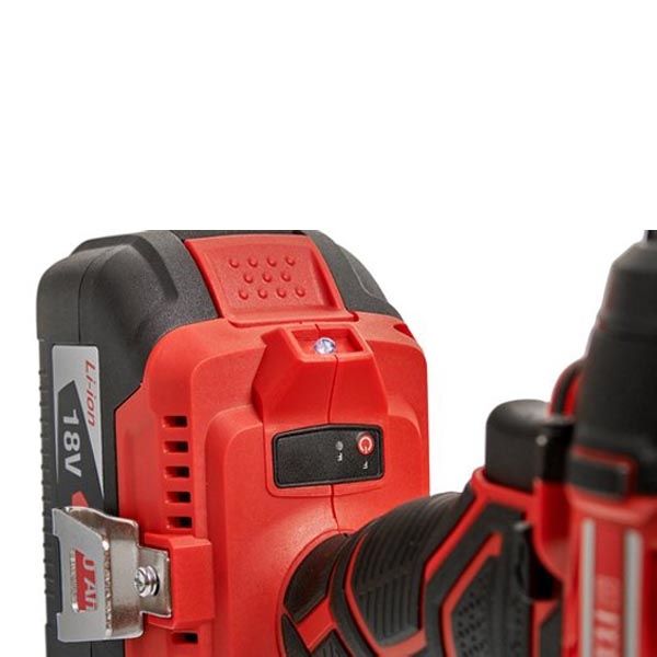 Слайдерное крепление батареи обеспечивает удобное сцепление батареи с корпусом инструмента и надежный контакт электрического соединения;