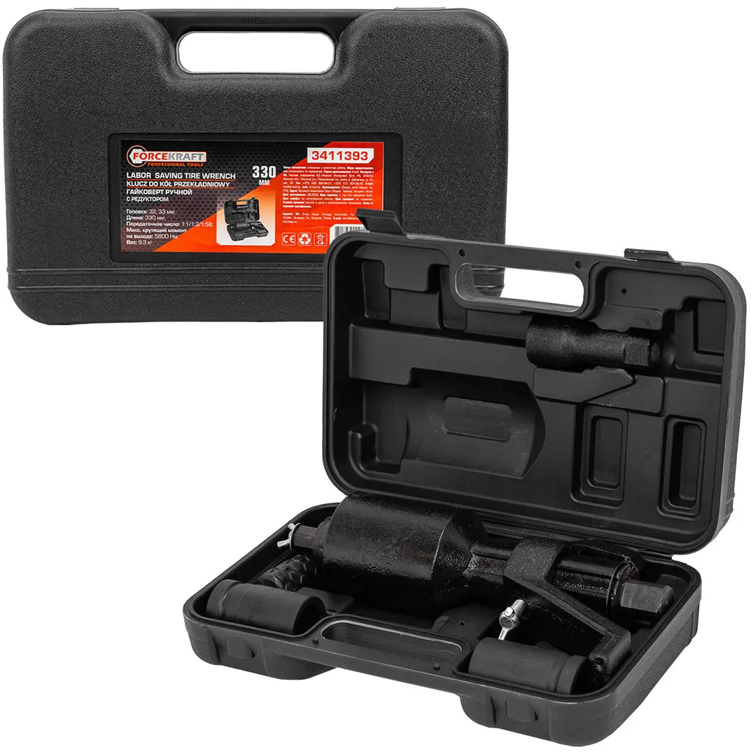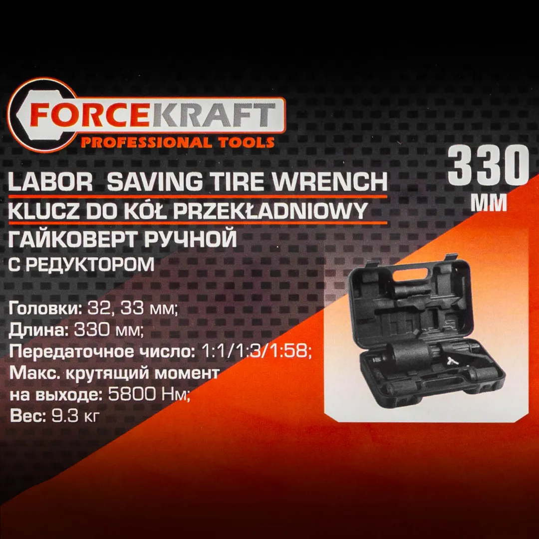 Гайковерт ручной с редуктором 1:1/1:3/1:58, 5800 Н/м, 1", головки 32, 33 мм, L330 мм ForceKraft FK-3411393