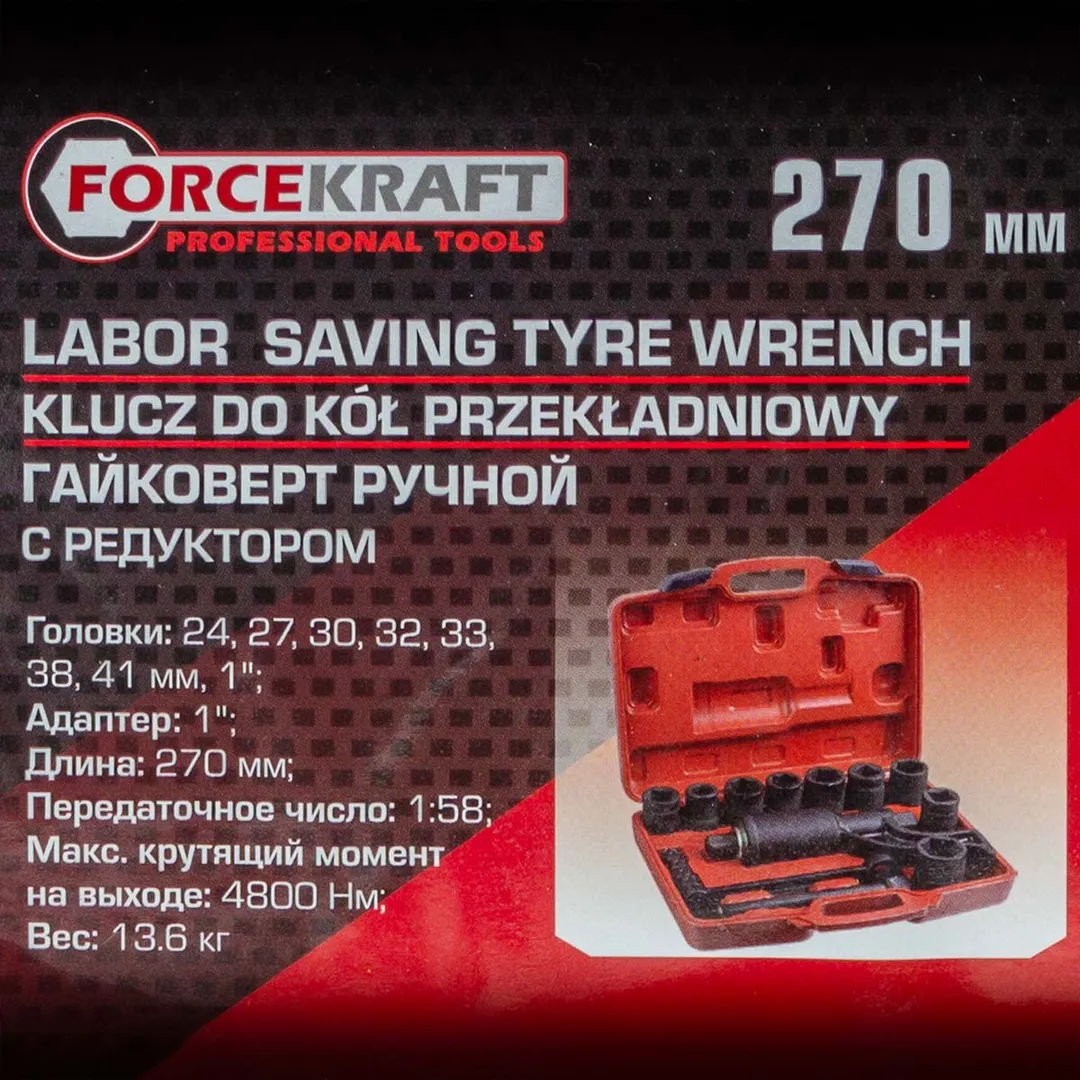 Гайковерт ручной с редуктором 1:58, 4800 Н/м, 1", головки 24-41 мм 7 пр, L270 мм ForceKraft FK-34122136