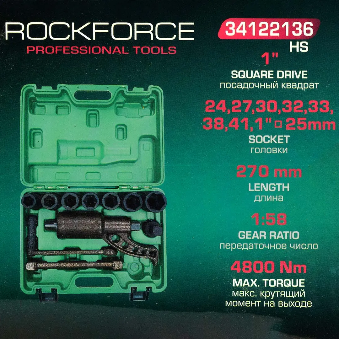 Гайковерт ручной с редуктором 1'', головки 24-41 мм, и адаптер 1'', L270 мм, передаточное число 1:58, 4800 Н/м RockForce RF-34122136 HS, описание и характеристики: