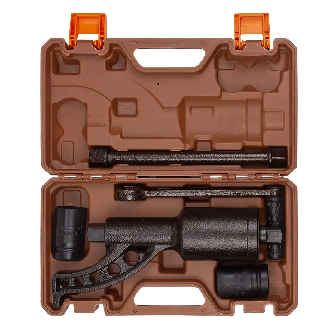Гайковерт ручной с редуктором в кейсе предназначен для откручивания различных резьбовых соединений на грузовых автомобилях, строительных сооружениях и др. При помощи "мясорубки"можно выполнять работу не прилагая больших усилий. Присоединительный квадрат 1". Передаточное число 1:68. Длина 310 мм. Комплектуется головками: 32, 33 мм. Максимальный момент силы 6200 Нм. В пластиковом кейсе.Преимущества работы с нами