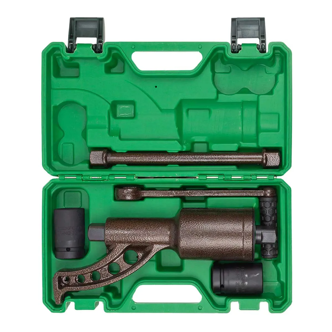 Гайковерт ручной с редуктором в кейсе предназначен для откручивания различных резьбовых соединений на грузовых автомобилях, строительных сооружениях и др. При помощи "мясорубки"можно выполнять работу не прилагая больших усилий. Присоединительный квадрат 1". Передаточное число 1:68. Длина 310 мм. Комплектуется головками: 32, 33 мм. Максимальный момент силы 6200 Нм. В пластиковом кейсе.Преимущества работы с нами