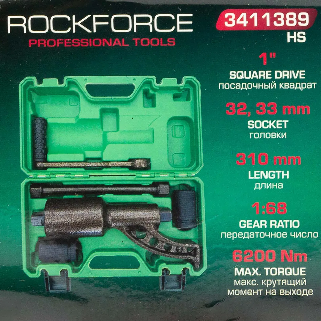 Гайковерт ручной с редуктором 1'', головки 32, 33 мм, L310 мм, передаточное число 1:68, 6200 Н/м RockForce RF-3411389 HS, описание и характеристики: