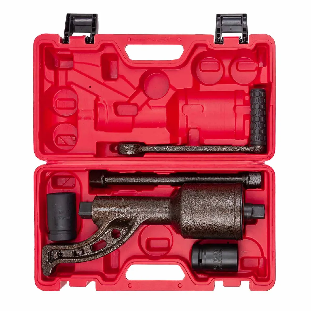 Гайковерт ручной с редуктором в кейсе предназначен для откручивания различных резьбовых соединений на грузовых автомобилях, строительных сооружениях и др. При помощи "мясорубки"можно выполнять работу не прилагая больших усилий. Длина 330мм; Максимальный крутящий момент 7500 Н/м. Передаточное число 1:78 Посадочный квадрат 1". Размеры головок 32 и 33 мм в комплекте. Рабочий профиль 6 граней. Для удобства хранения и транспортировки поставляется в прочном пластиковом кейсе.Преимущества работы с нами