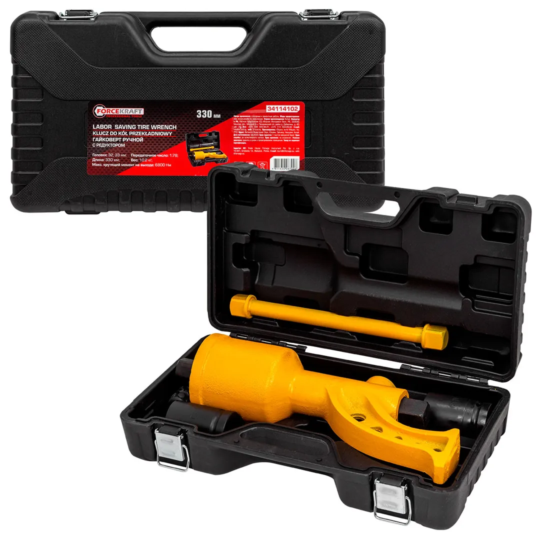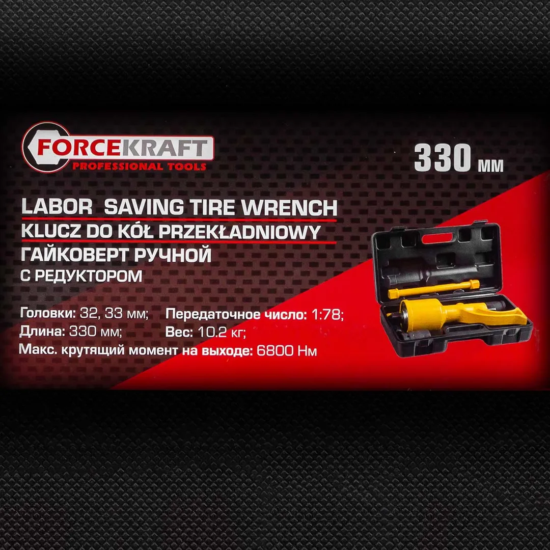 Гайковерт ручной с редуктором, передаточное число 1:78, 6800 Н/м, головки 32, 33 мм ForceKraft FK-34114102, описание и характеристики: