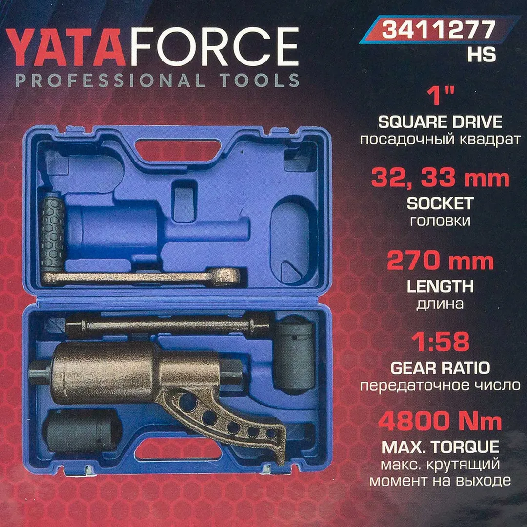 Гайковерт ручной с редуктором 1", головки 32, 33 мм, L270 мм, передаточное число 1:58, 4800 Н/м YATAFORCE YF-3411277 HS, описание и характеристики:
