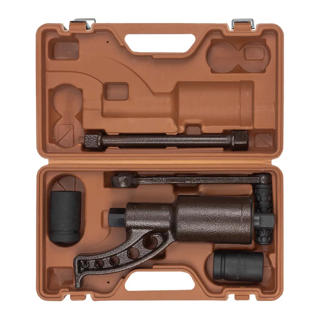 Гайковерт ручной с редуктором в кейсе предназначен для откручивания различных резьбовых соединений на грузовых автомобилях, строительных сооружениях и др. При помощи "мясорубки"можно выполнять работу не прилагая больших усилий. Присоединительный квадрат 1". Передаточное число 1:58. Длина 270 мм. Комплектуется головками: 32, 33 мм. Максимальный момент силы 4800 Нм. В пластиковом кейсе.Преимущества работы с нами