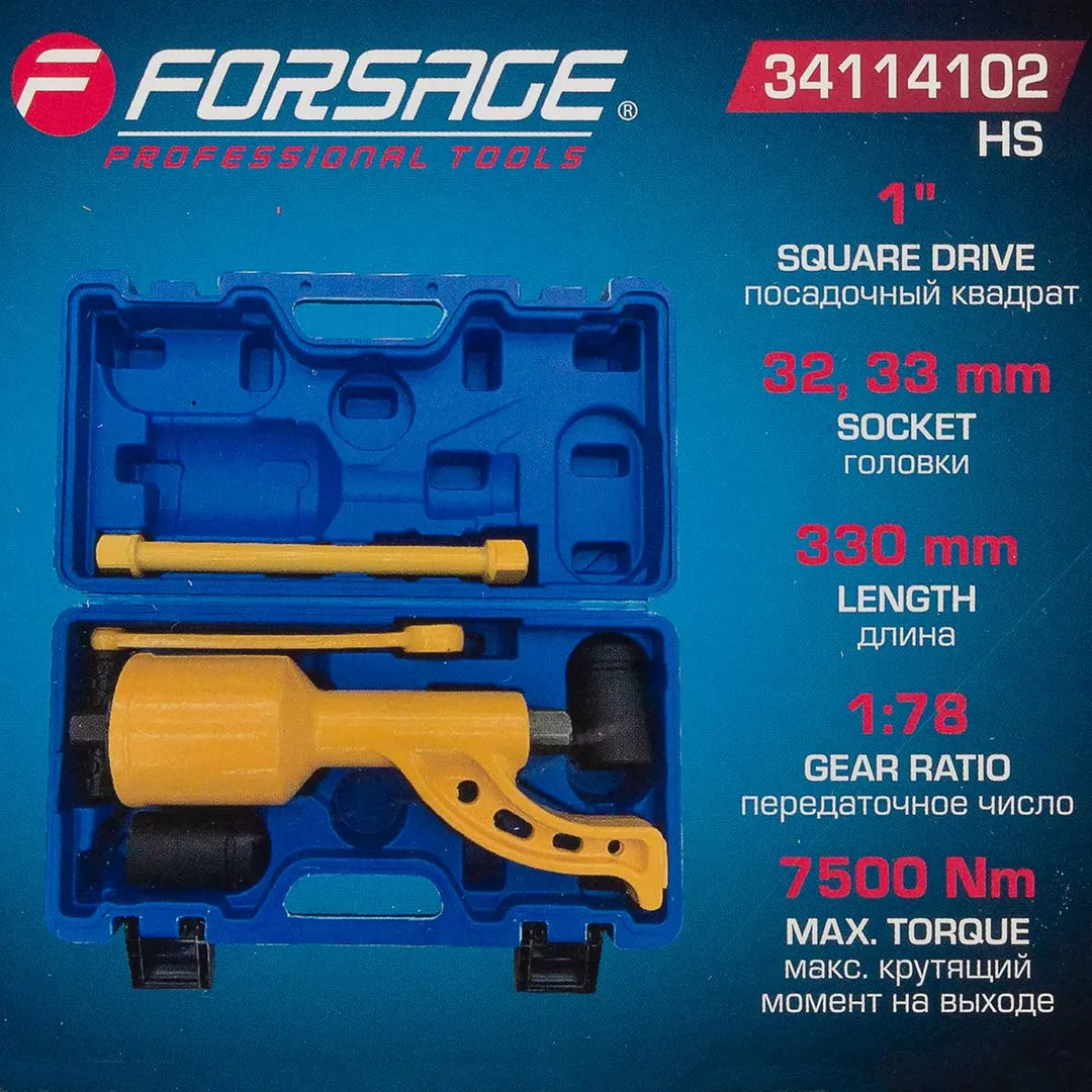 Гайковерт ручной с редуктором 1", головки 32, 33 мм, L330 мм, передаточное число 1:78, 7500 Н/м Forsage F-34114102 HS, описание и характеристики: