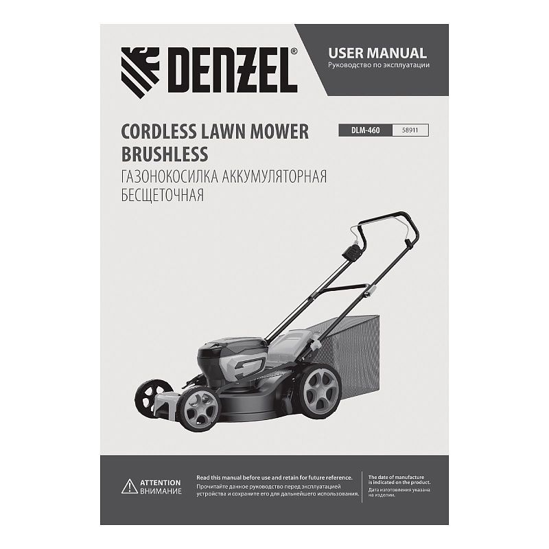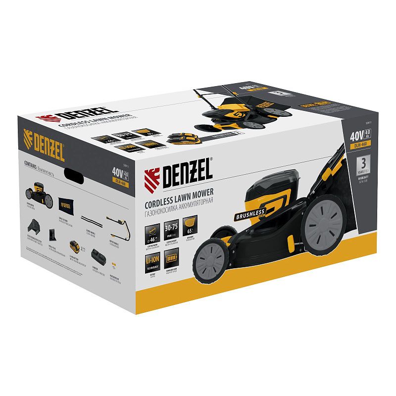 Газонокосилка аккумуляторная бесщет. DLM-460, 460 мм, травосб. 65 л., Li-Ion, 40 В Denzel 58911, описание: