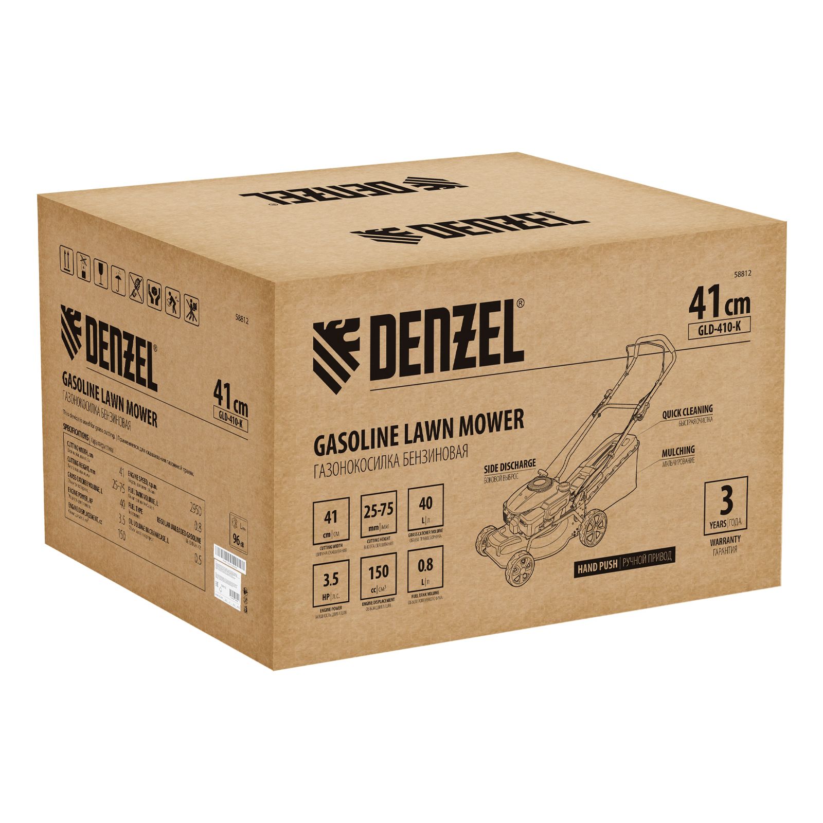 Газонокосилка бензиновая GLD-410-K, 150 см3, 41 см, 40 л Denzel 58812, описание: