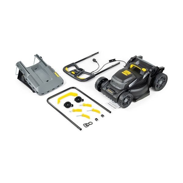 Электрическая газонокосилка Champion EM4018 - ширина скашивания составляет 40 см, а высота скашивания регулируется централизованно и может варьироваться от 25 до 75 мм, есть 7 положений высоты. Газонокосилка имеет эргономичную ручку, которая легко складывается, когда технику нужно перевезти в автомобиле или отправить на хранение. Скошенная трава поступает в травосборник объемом 40 л.