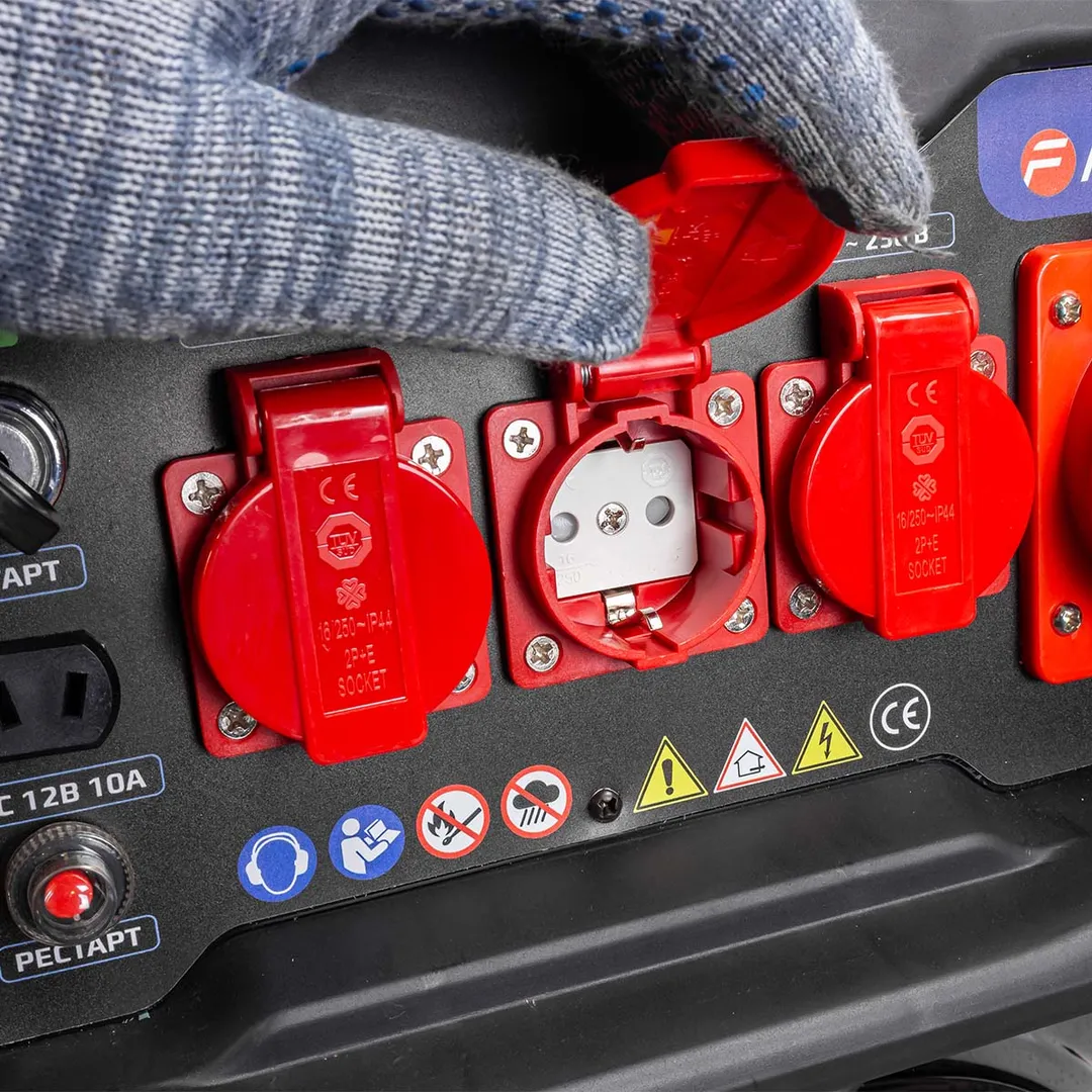 - Тип источника выходного напряжения: 3 розетки 230 В частота 50 Гц +1 розетка 400В.