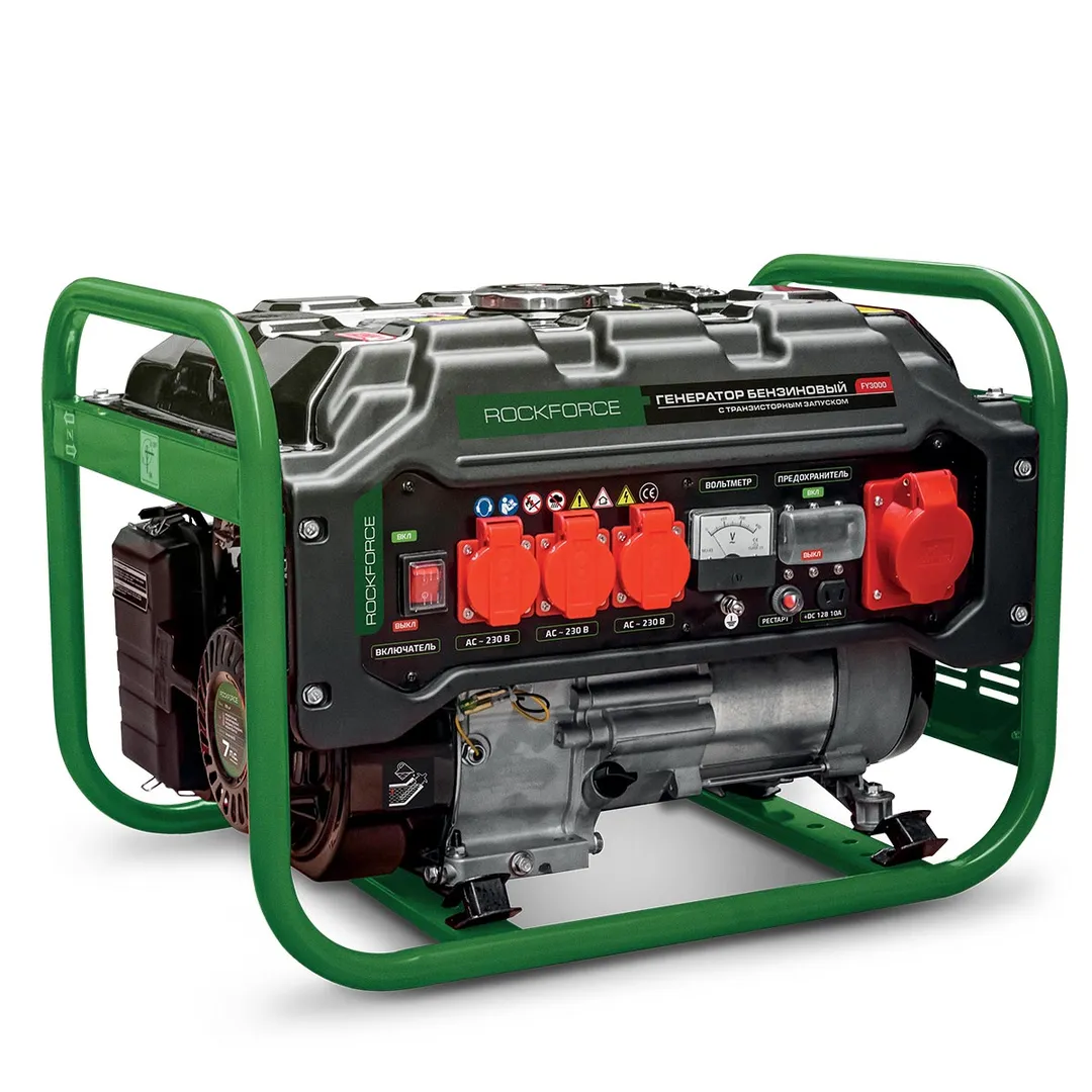 Генератор бензиновый с транзисторным запуском 15 л, 830-2500Вт, 7 л.с. RockForce RF-FY3000