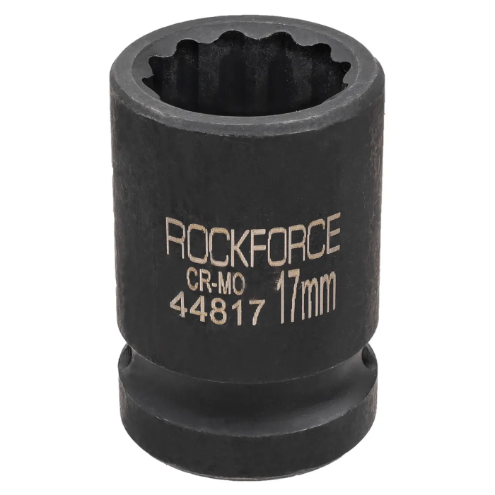 Торцевая головка ударная 17мм. Ударные торцевые головки с посадочным квадратом 3/4"применяются как часть сборного инструмента в работе по обслуживанию экстремально нагруженных и крайне осложненных резьбовых соединений. Головка имеет 12-гранный профиль, который позволяет работать как с шестигранным, так и двенадцатигранным крепежом, то есть является более универсальным и прекрасно подходят для работы в условиях ограниченного пространства, так как они надеваются на крепеж под большим количеством углов, чем шестигранные. Используется в тяжелой дорожной, строительной, сельскохозяйственной, горнодобывающей технике и оборудовании, при монтаже и обслуживании металлоконструкций строительных и инженерных сооружений и т.п. Материал изготовления Хром-Молибден.