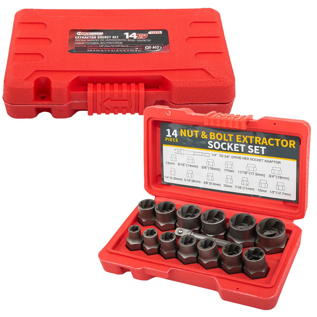 Набор головкок-экстракторов для извлечения поврежденных болтов/гаек 14 пр ForceKraft FK-1321S