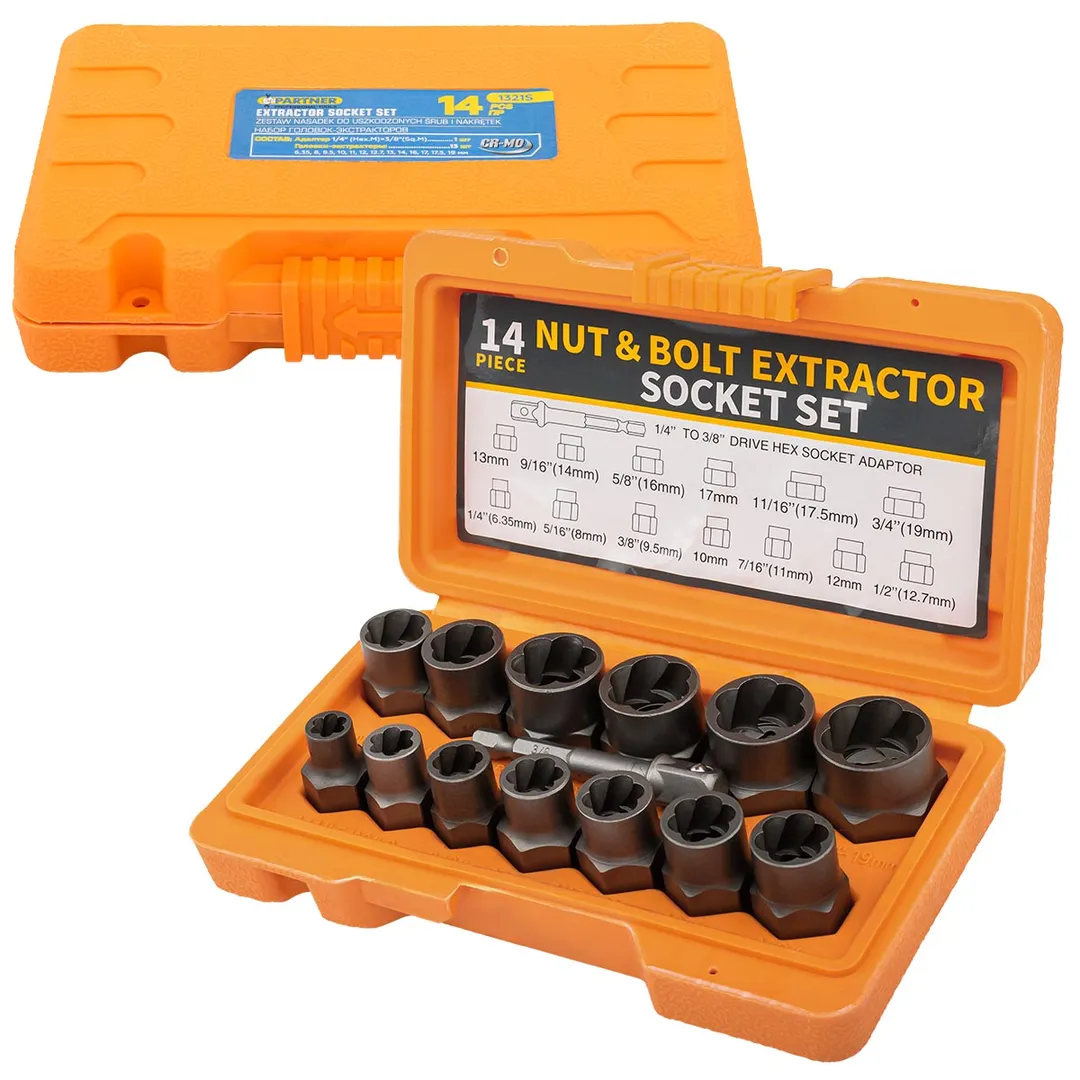 Набор головкок-экстракторов для извлечения поврежденных болтов/гаек 14 пр Partner PA-1321S
