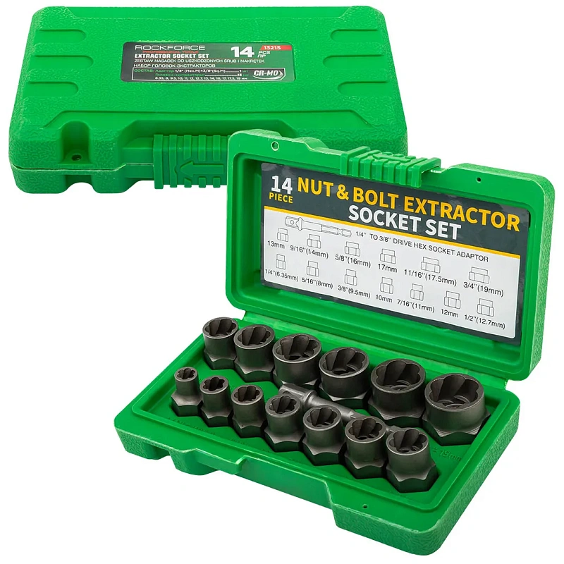 Набор головкок-экстракторов для извлечения поврежденных болтов/гаек 14 пр RockForce RF-1321S