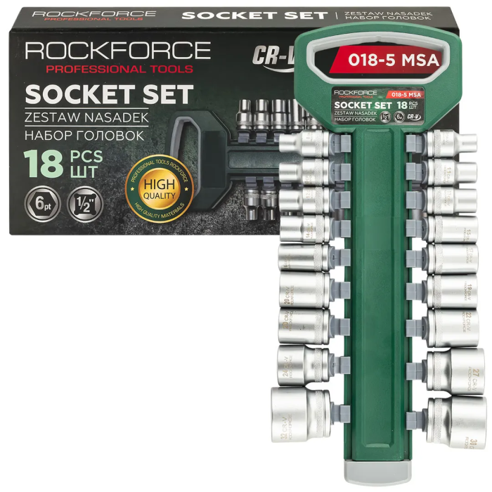 Набор головок 8-32 мм 1/2'' 6-гр 18 пр RockForce RF-018-5 MSA