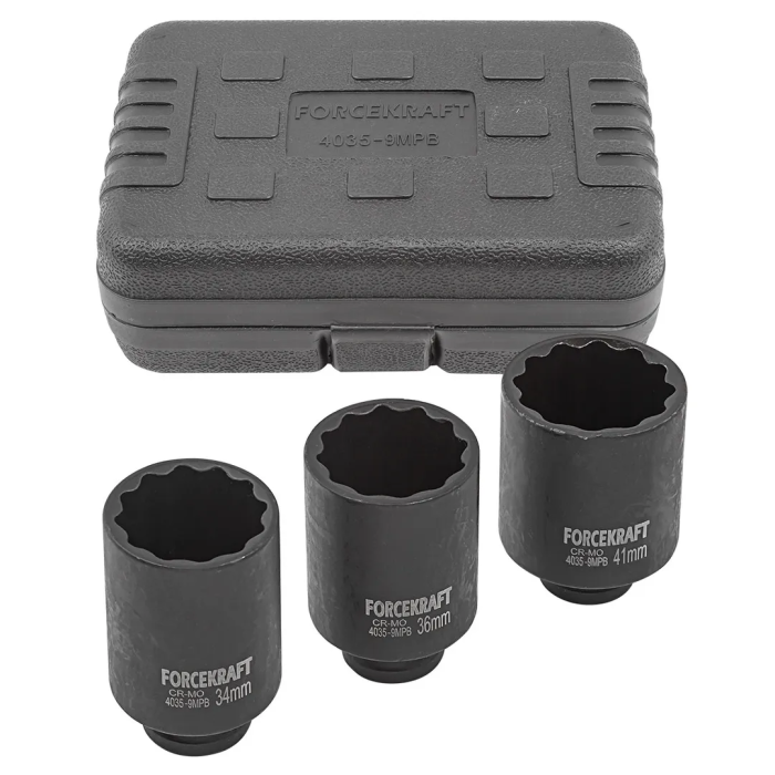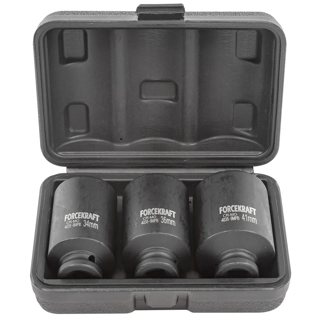 Набор ударных глубоких головок 34, 36, 41 мм 1'' 12-гр 3 пр ForceKraft FK-4035-9MPB