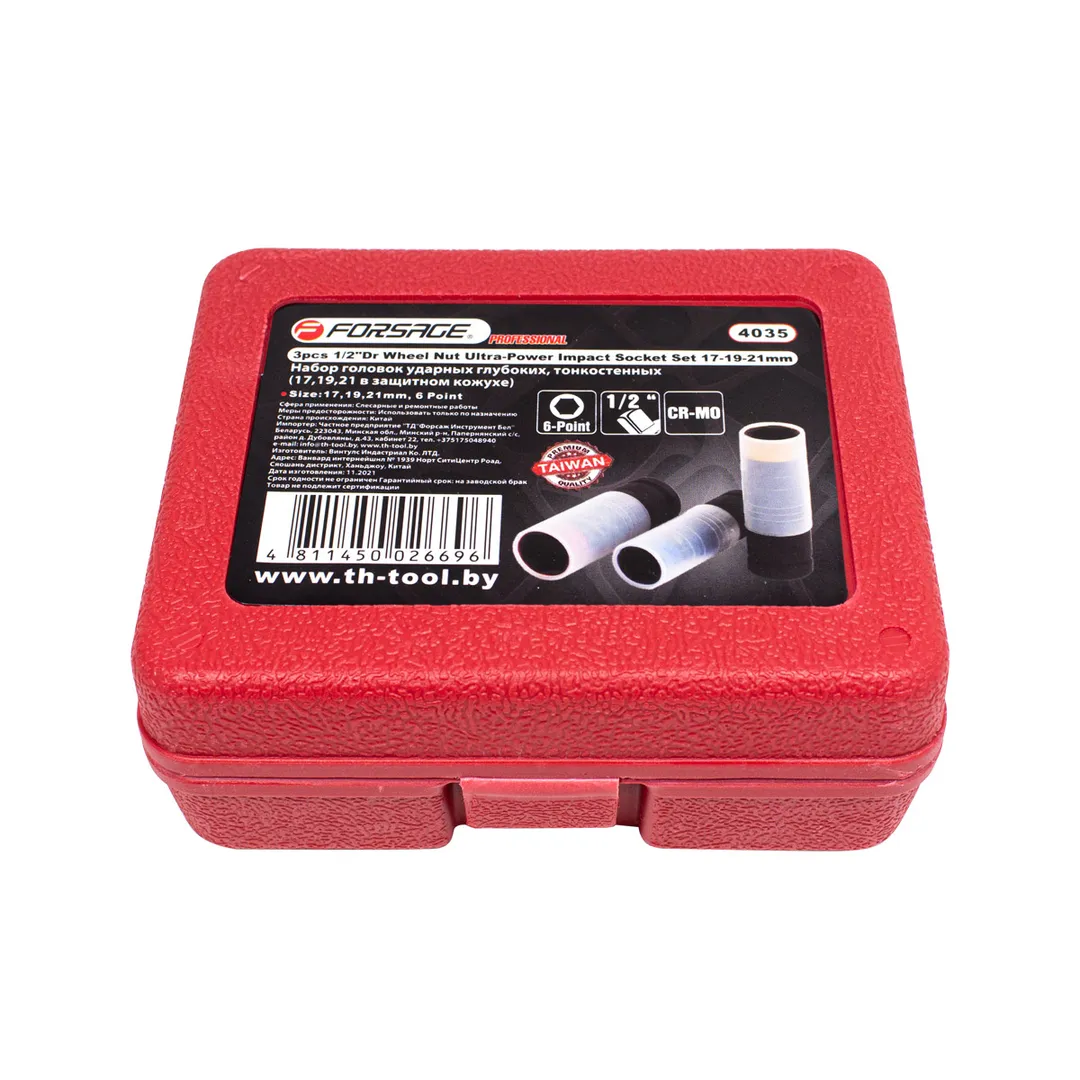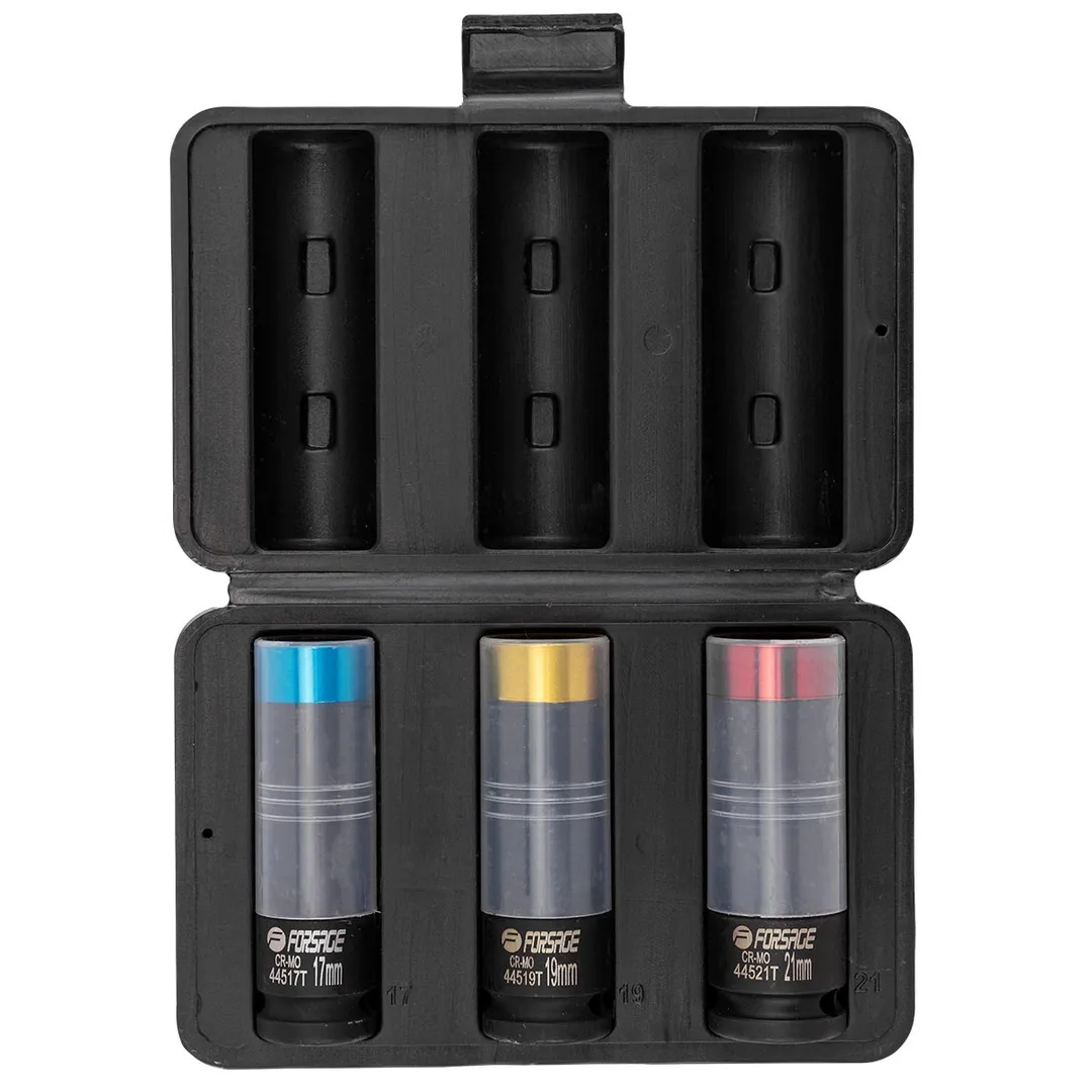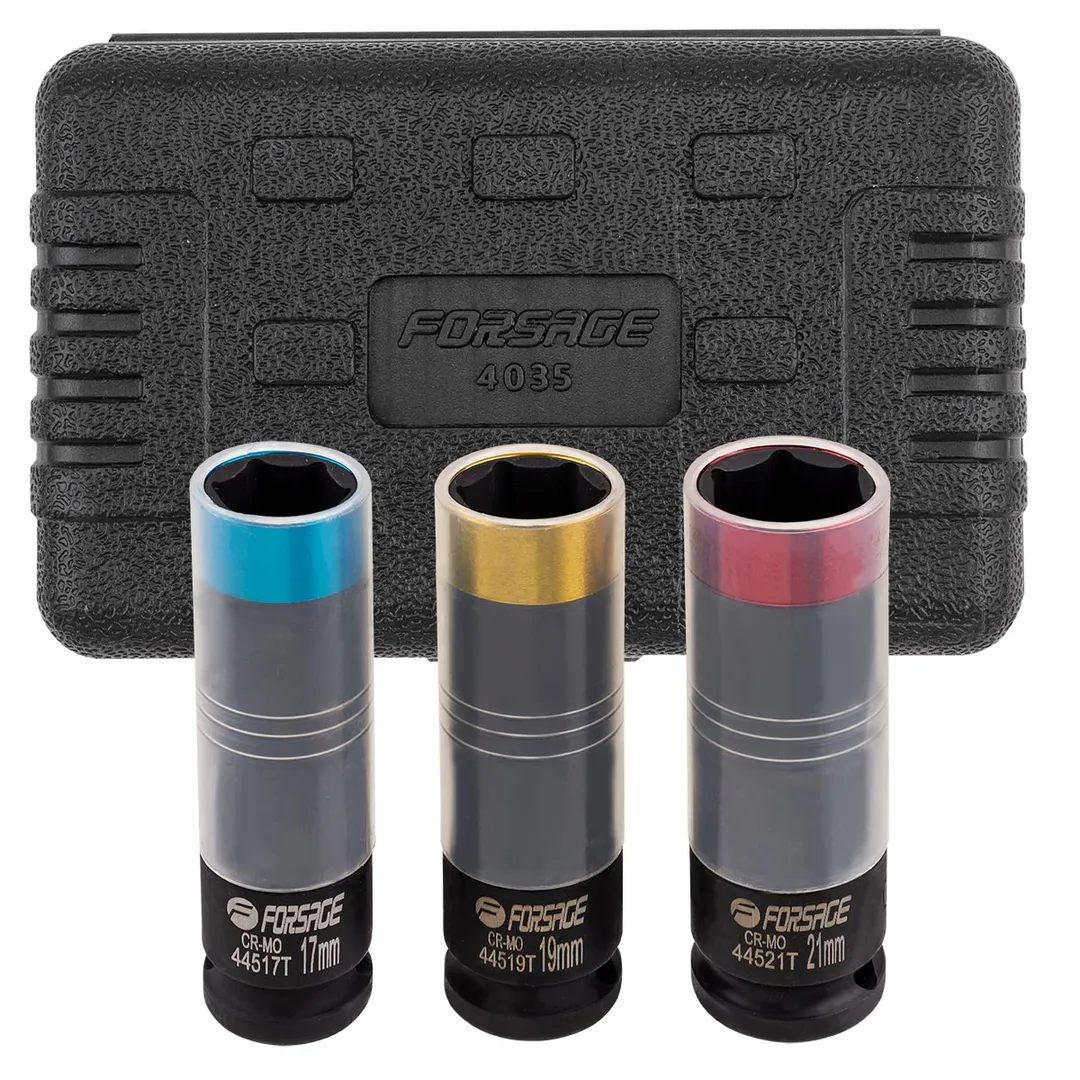 Набор ударных глубоких тонкостенных головок 17, 19, 21 мм 1/2'' 3 пр Forsage F-4035