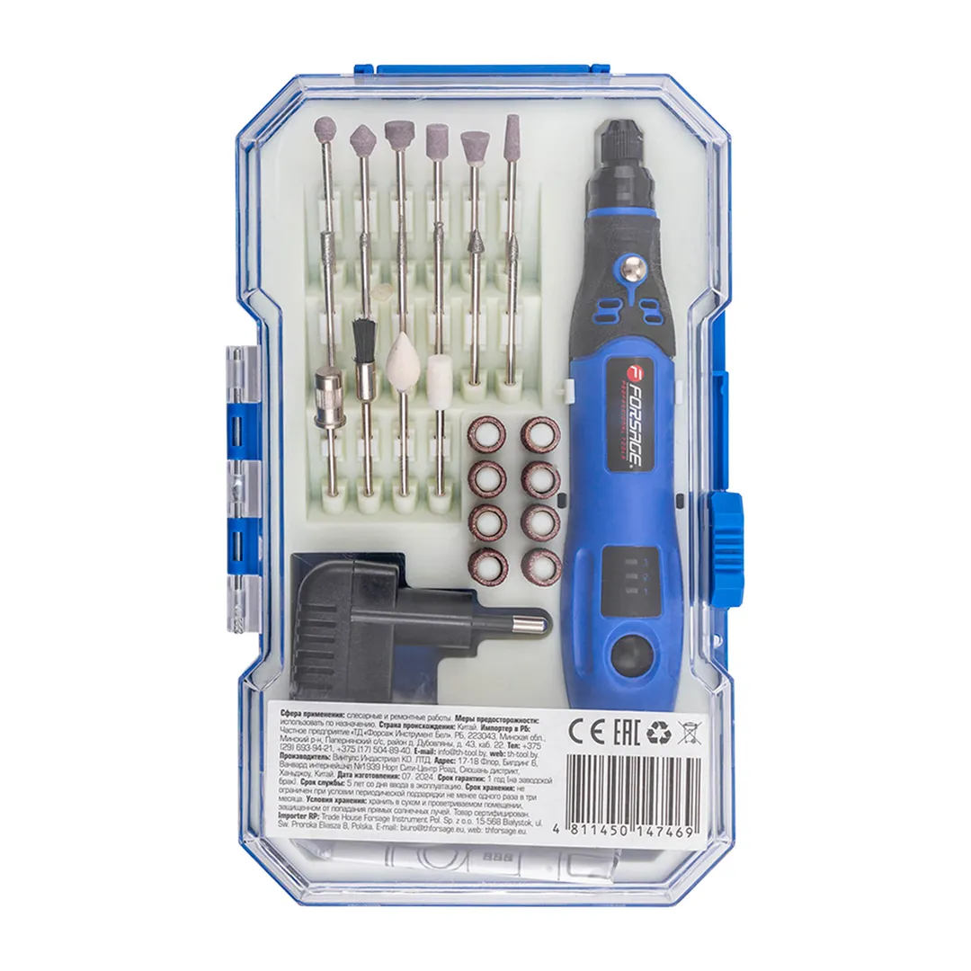 Гравер аккумуляторный 3.6V, Li-ion 600Ah в комплекте с аксессуарами 26 пр Forsage F-IXO VI
