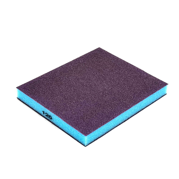 Абразивное зерно нанесено на две стороны губки, что улучшает эргономику и эффективность использования при шлифовании поверхностей со сложным рельефом.