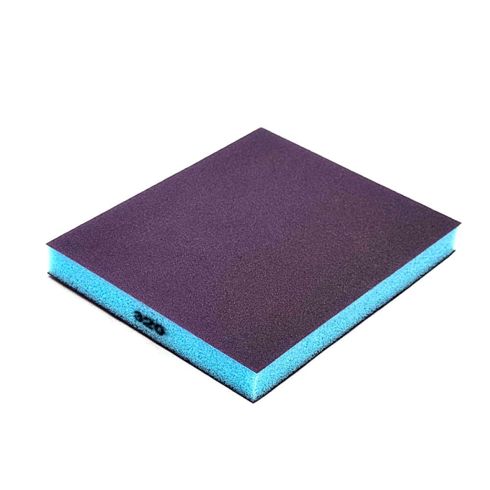Абразивное зерно нанесено на две стороны губки, что улучшает эргономику и эффективность использования при шлифовании поверхностей со сложным рельефом.
